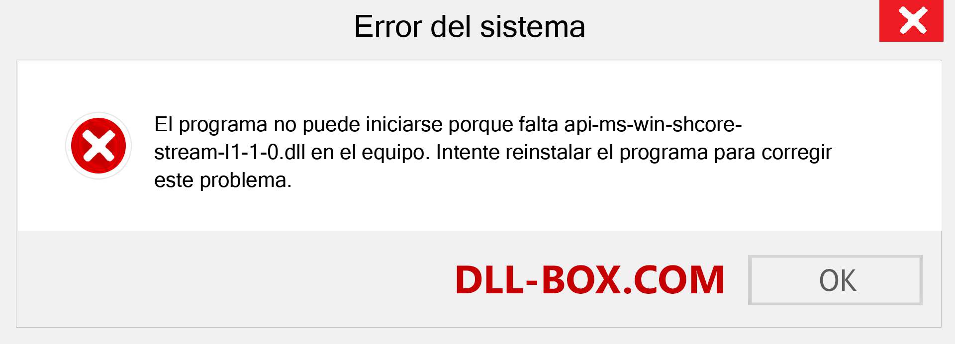 9. No se encontró api-ms-win-shcore-stream-l1-1-0.dll.
